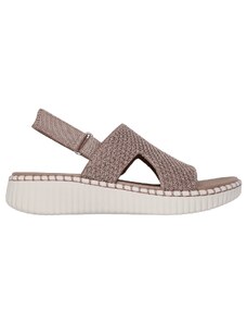 Skechers Women's Reggae Slim - Coffee Run Sandals in Taupe, Size 2 | Textile/Synthetic, Vegan, Machine Washable