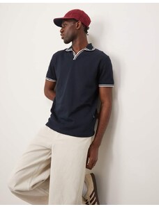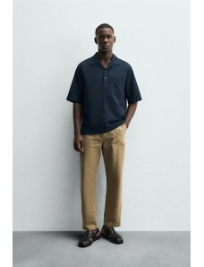ZARA COTTON/LINEN POLO SHIRT Navy blue S