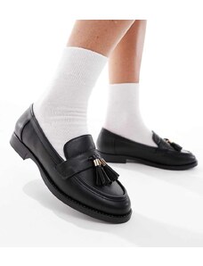 London Rebel Wide Fit Amelia tassel penny loafers in black