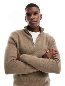 ONLY & SONS ribbed half zip jumper in light brown