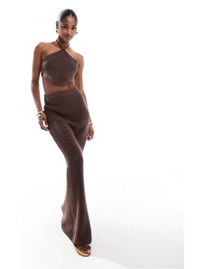 4th & Reckless knitted high waisted maxi beach skirt co-ord in chocolate brown