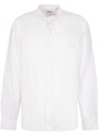 white linen/flax front button fastening band collar long sleeves buttoned cuffs curved hem