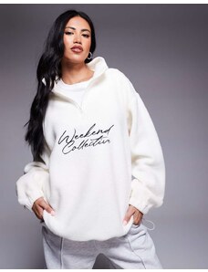ASOS Weekend Collective Weekend Collective oversized half zip borg fleece with logo in cream-White