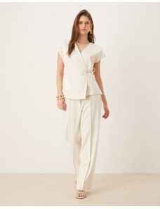 Missyempire linen look drawstring waist wide leg trousers co-ord in cream-White