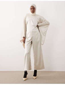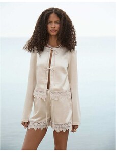 4th & Reckless satin tie front crochet trim beach top co-ord in buttercream-White