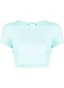 circa 1997 light blue stretch-design round neck signature interlocking CC logo short sleeves straight hem cropped Condition: GOOD. This previously owned and used item is in good condition with minimal signs of use. This may include fading of material or plating and scratches.