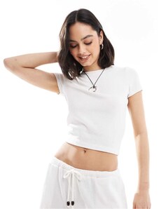 Gina Tricot short sleeve sculpture seam detail top in off white