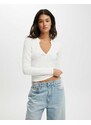 Cotton On ultra soft plunge t-shirt in coconut-White