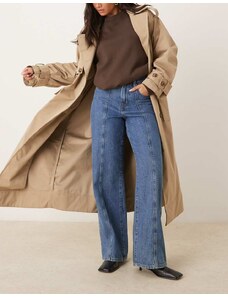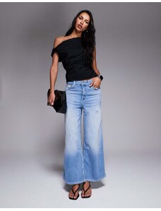 Gina Tricot wide leg front seam detail jeans in midwash blue
