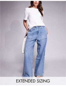 JDY Petite Felina high waist wide leg jean in medium blue denim