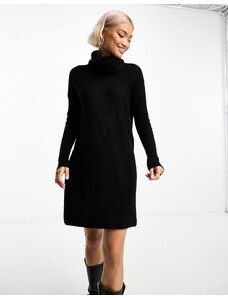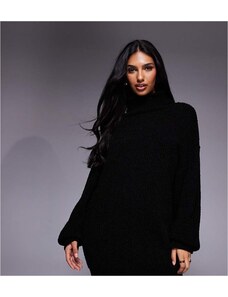 Kaiia exclusive ribbed knit rollneck slouchy jumper dress in black-Grey