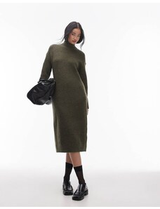ONLY exclusive volume sleeve high neck knitted jumper dress in dark green