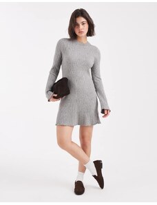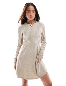 Kaiia exclusive crew neck ribbed fit and flare knitted dress in sand-Neutral