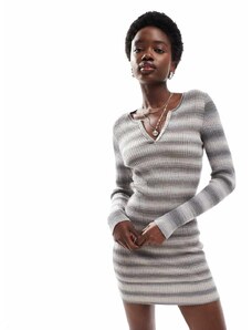 Gina Tricot long sleeve knitted v neck button down maxi wool dress in mid grey melange