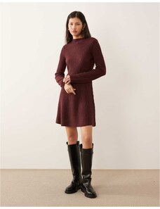 Kaiia exclusive knitted high neck skater mini dress in light brown