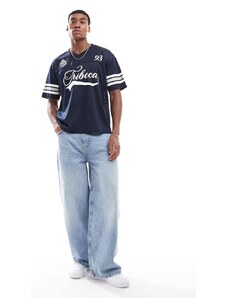Cotton On sporty off shoulder graphic tee in total eclipse-Navy