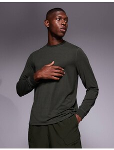 4505 quick dry performance jersey long sleeve training top in khaki-Green
