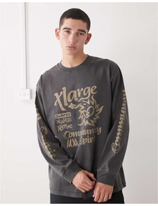 XLarge long sleeve graphic logo pigment dyed t-shirt in black wash