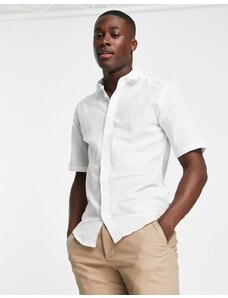 ONLY & SONS short sleeve slim fit shirt in linen mix in white
