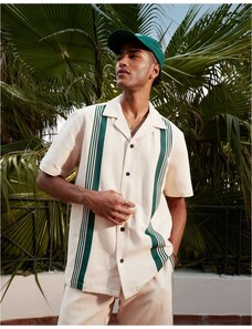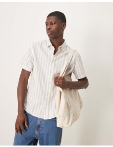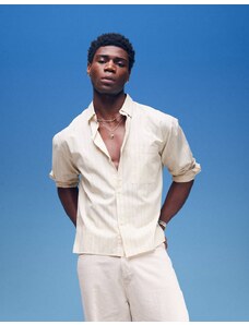 Alma De Ace stripe detail short sleeve shirt co-ord in beige-White