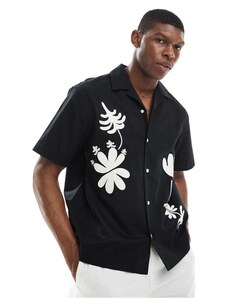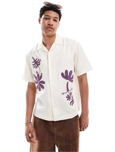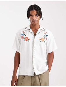 ONLY & SONS contrast stitch embroidered detail shirt in white