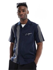 JJ Rebel revere collar textured short sleeve shirt in white stripe
