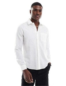 ONLY & SONS regular fit linen mix long sleeve shirt in white-Green