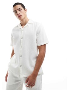 ONLY & SONS short sleeve linen blend textured shirt co-ord in white