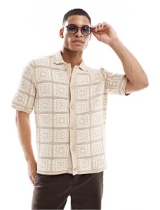 ONLY & SONS revere collar texture shirt co-ord in cream-Neutral