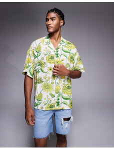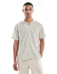 ONLY & SONS short sleeve resort shirt in white with green triangle print