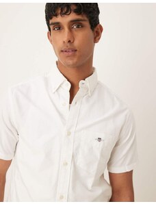 GANT resort revere collar short sleeve tonal seersucker stripe shirt in off white