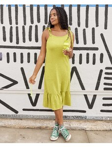 Kaiia exclusive crew neck ribbed fit and flare knitted dress in sand-Neutral
