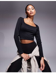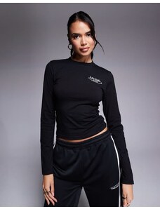 Kaiia cotton rich Studio long sleeve crop top co-ord in black