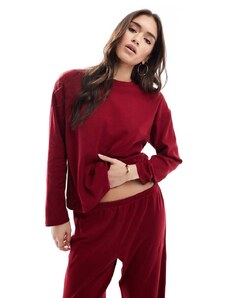 Cotton On sleep pointelle rib long sleeve top in deep red co-ord