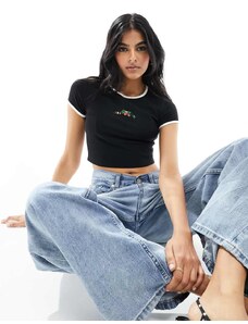 The Frolic exclusive strawberry motif baby t-shirt with contrast trim in black