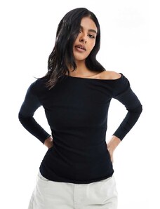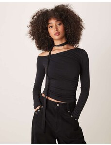 Gina Tricot slinky jersey one shoulder ruched twist top in black