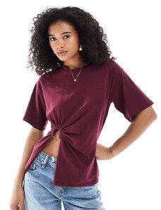 ONLY ring detail ruched t-shirt in burgundy-Black