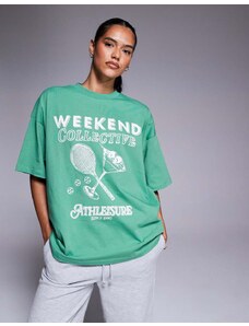 ASOS Weekend Collective Weekend Collective oversized t-shirt with athleisure tennis club in green