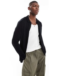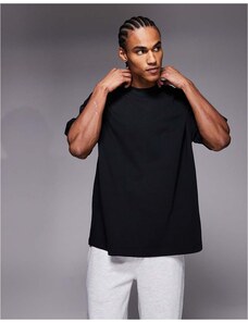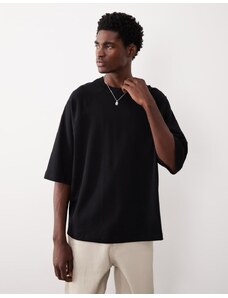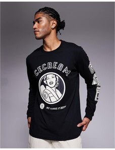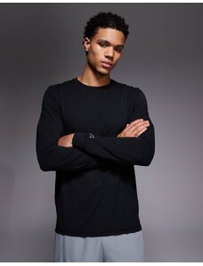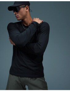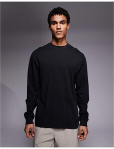 HUGO RED Laze central logo lounge relaxed fit hooded long sleeve t-shirt in black