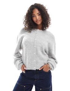 Gina Tricot crew neck knitted wool alpaca cardigan in light grey melange