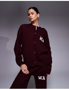 ASOS Weekend Collective Weekend Collective co-ord knitted cardigan with varsity graphic in burgundy-Red