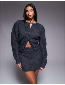 Kaiia exclusive fine knit button through cardigan co-ord in charcoal-Grey