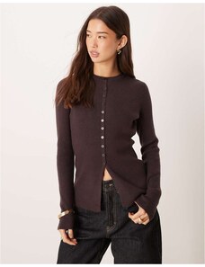 AWARE compact rib knitted mini button front cardigan in chocolate melange-Brown