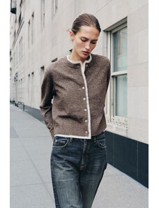 ZARA COMBINED KNIT CARDIGAN Mink S