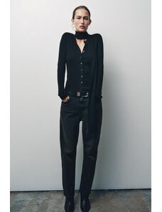 ZARA RIB KNIT CARDIGAN WITH SCARF Black S