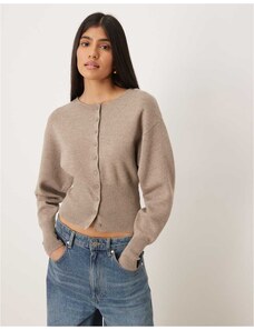 Gina Tricot sculpt shaped knit button up cardigan in brown melange