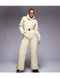 ASOS 4505 Ski & Snow 4505 Tall Ski retro belted ski suit with funnel neck in buttermilk-Yellow