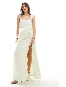 The Frolic exclusive ruffle drape detail square neck thigh split maxi dress in buttermilk yellow