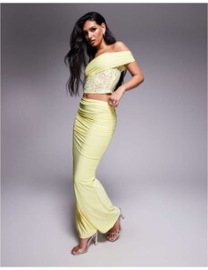 Missyempire double sculpted slinky ruched side detail fishtail maxi skirt co-ord in lemon-Yellow