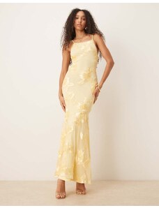 Gina Tricot strappy flower embroidery maxi dress in yellow